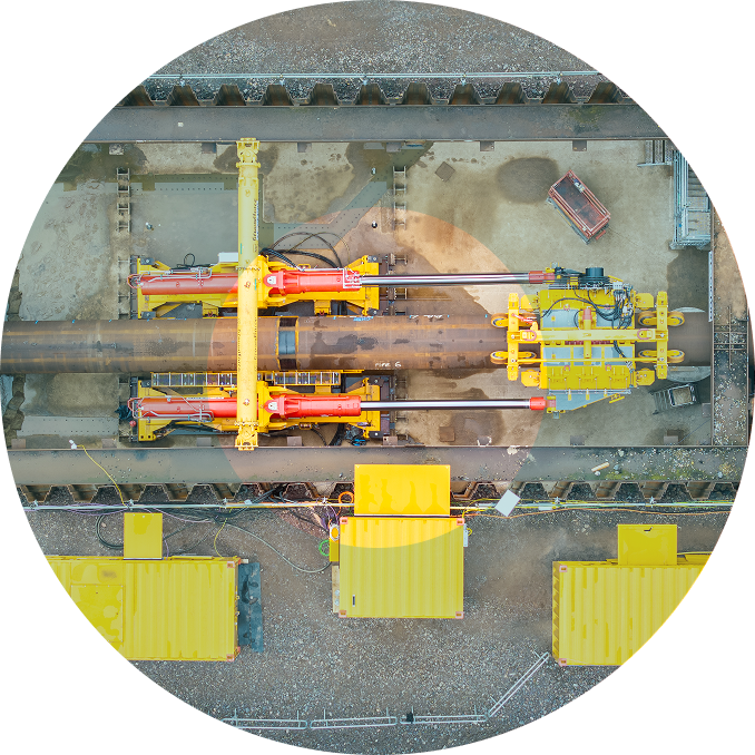 Our Direct Pipe® fleet includes microtunnel boring machines (MTBM) to excavate the soil, pipe thrusters to drive the machines forward and retract the pipeline or machines if needed, as well as separation plants and high-accuracy guidance systems designed to perform in difficult ground, including mixed geology and solid rock. High steering control and real-time monitoring deliver exceptional line and level accuracy, even on constrained sites.