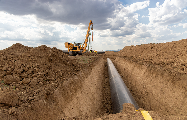 Trenching and groundworks are carried out using appropriate methods for the terrain. Pipes are laid, welded or jointed by qualified operatives, ensuring accurate alignment and long-term integrity.